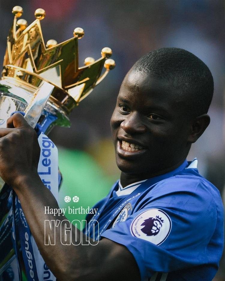 切尔西官方社媒晒出为坎特制作的生日海报,配文:“祝我们的传奇中场坎特生日快乐!”